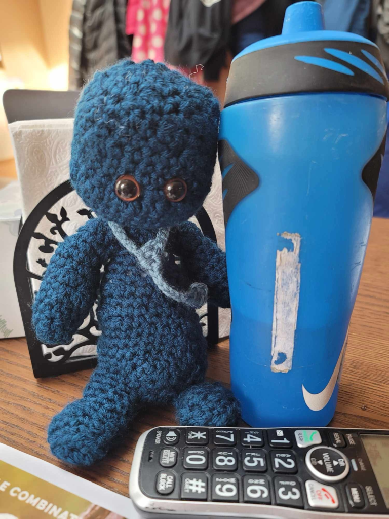 I had no idea what the names of stitches were, how to read patterns, etc. After making blankets for my family first, I started looking at other people’s creations online and was inspired to try some of these creations myself. So I found a pattern (it just so happened to be an amigurumi pattern) and went at it…it came out….. well…..messy but I had a great laugh and knew that I had some more work to do!